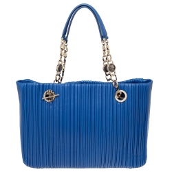 Bvlgari Royal Blue Leather Monte Plisse Shopper Tote