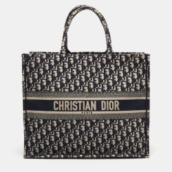 Dior Navy Blue Oblique Embroidery Canvas Book Tote