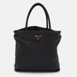 Prada Tessuto Black Nylon Saffiano Leather Tote Bag