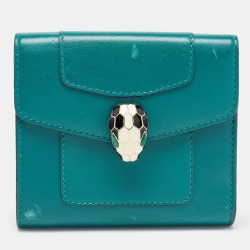 Bvlgari Green Leather Serpenti Forever Trifold Wallet