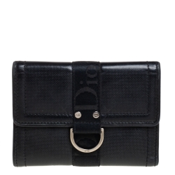 Dior Black Textured Leather Compact Wallet