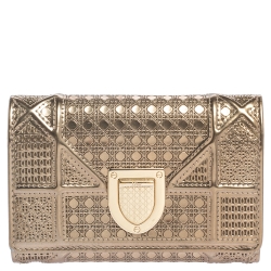 Dior Metallic Gold Micro Cannage Leather Diorama Trifold Wallet