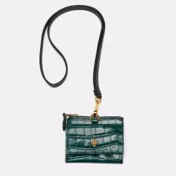 Alexander McQueen Green Croc Embossed Leather Skull Zip Card Holder With Strap