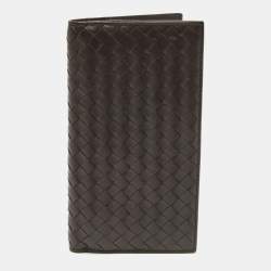 Bottega Veneta Dark Brown Intrecciato Leather French Wallet