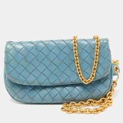 Bottega Veneta Blue Intrecciato Leather Flap Continental Wallet