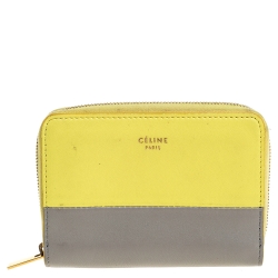 Celine Yellow/Grey Leather Zip Around Coin Purse