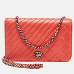 Chanel Red Quilted Leather Classic Wallet on Chain
