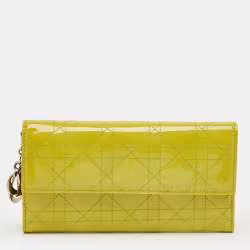 Dior Light Green Cannage Patent Leather Rendezvous Wallet on Chain