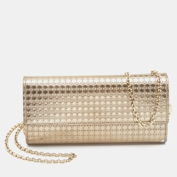 Dior Metallic Gold Microcannage Patent Leather Croisiere Wallet On Chain