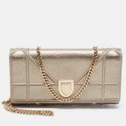 Dior Metallic Gold Leather Diorama Wallet on Chain