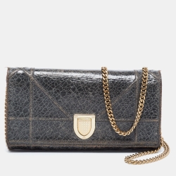 Dior Silver Microcannage Patent Leather Diorama Wallet on Chain