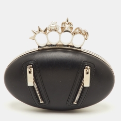 Alexander McQueen Black Studded Leather Skull Knuckle Box Clutch