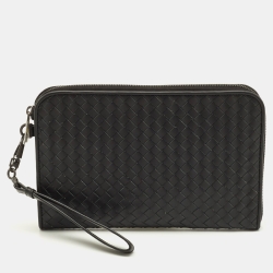 Bottega Veneta Black Intrecciato Leather Document Clutch