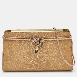 Bvlgari Gold Stingray Leather Tubogas Chain Clutch