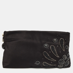Bvlgari Black Satin Embellished Clutch