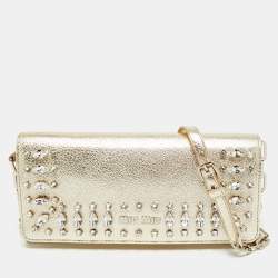 Miu Miu Metallic Grey Matelassé Leather Crystals Embellished Chain Clutch