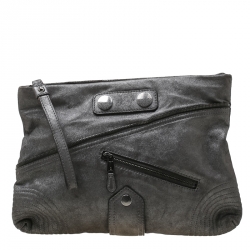 Alexander McQueen Metallic Grey Textured Leather Wristlet Clutch