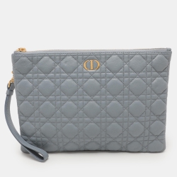 Dior Dust Blue Quilted Leather Caro Wristlet Clutch