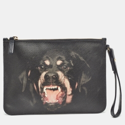 Givenchy Black Coated Canvas Rottweiler Face Wristlet Pouch