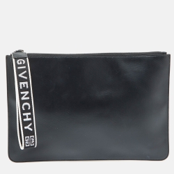 Givenchy Black Leather Logo Embossed Wristlet Pouch