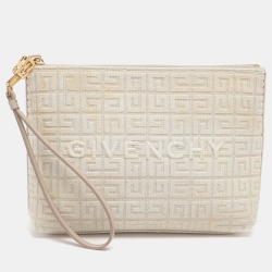 Givenchy Logo Embroidered Off White Canvas Wristlet Clutch