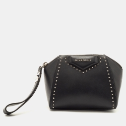 Givenchy Black Leather Studded Antigona Wristlet Clutch