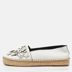 Dior White Laser Cut Leather Flower Applique Flore Flat Espadrilles Size 39