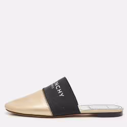 Givenchy Gold/Black Leather and Stretch Band Bedford Flat Mules Size 37