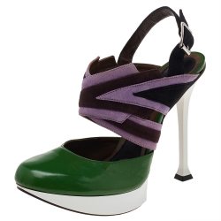 Marni Multicolor Leather And Suede Platform Slingback Sandals Size 38.5