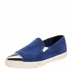 Miu Miu Blue Suede Metal Cap Toe Slip On Sneakers Size 36