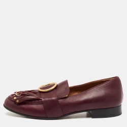 Chloe Burgundy Leather Fringe Gold Tips Details Slip On Loafers Size 40