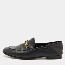 Gucci Black Leather Horsebit Web Loafers Size 35