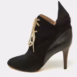 Chloe Black Suede and Leather Pointed Toe Ankle Booties Size 38.5