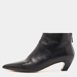 Dior Black Leather and Denim Pointed Toe Ankle Boots Size 36