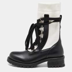 Dior Navy Blue/Black Canvas and Leather Glorious Lace Up Ankle Length Boots Size 40