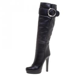 Gucci Black Leather Horsebit Knee Length Boots Size 37.5