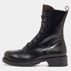 Louis Vuitton Black Leather Buckle Detail Platform Combat Ankle Boots Size 37