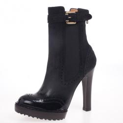 McQ by Alexander McQueen Black Leather Brogue Platform Ankle Boots Size 38