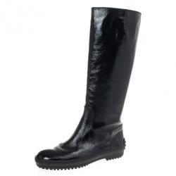 Tod's Black Patent Knee Length Boots Size 38.5
