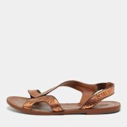 Bottega Veneta Metallic Bronze Snakeskin Leather Ankle Strap Flats Size 40