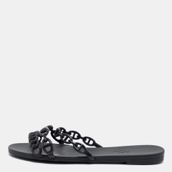 Hermes Black Rubber Aloha Flat Slides Size 39