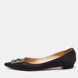 Manolo Blahnik Black Satin Hangisi Ballet Flats Size 38.5