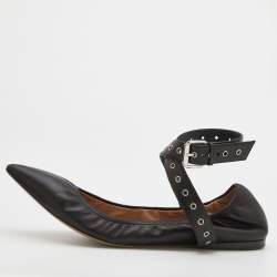 Valentino Black Embellished Leather Ankle Strap Flats Size 36