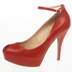 McQ By Alexander McQueen Red Leather Peep Toe Burlesque Size 41