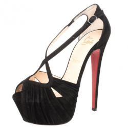 Christian Louboutin Black Suede ‘Divinoche 160′ Platform Sandals Size 39.5