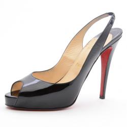 Christian Louboutin Black Patent Lady Peep Toe Slingback Sandals Size 35