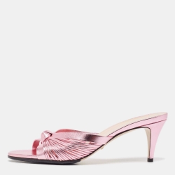 Gucci Metallic Pink Leather Knotted Slide Sandals Size 40