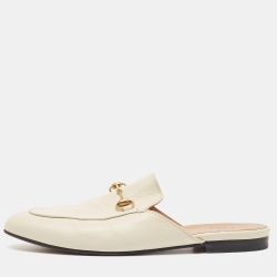Gucci Off White Leather Mallory Slides Mules Size 39