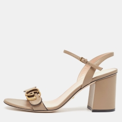 Gucci Beige Leather GG Marmont Block Heel Ankle Strap Sandals 40.5