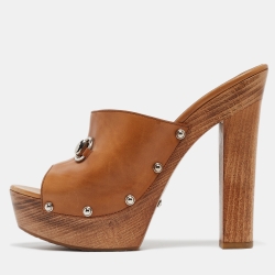 Gucci Brown Leather Horsebit Open Toe Clogs Size 39.5